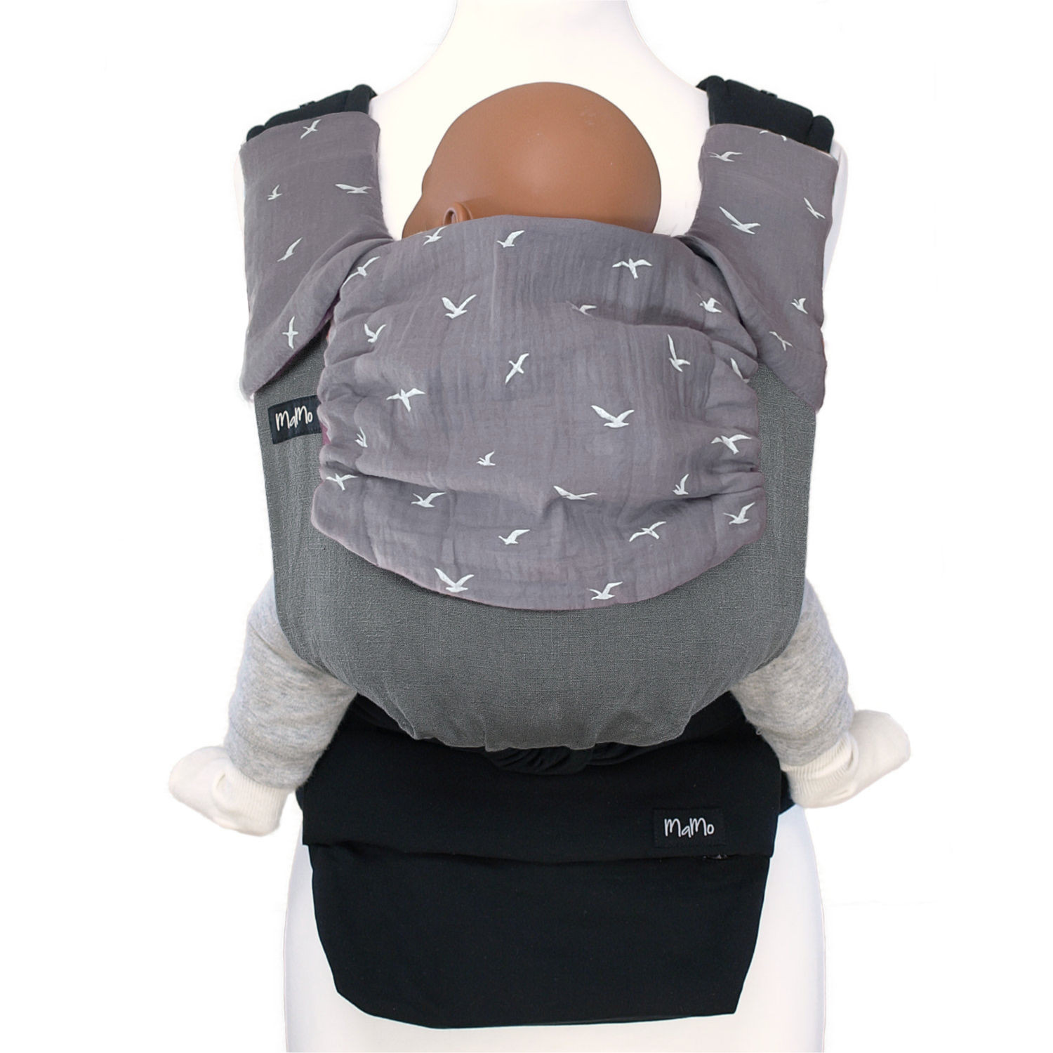 Die MaMo ist nicht fest zusammengenäht, sondern besteht aus verschiedenen Teilen. Damit der Sitzbereich für dein Baby ("Beutel") immer die passende Größe hat - wie du es von Kleidung kennst (1 Beutelgröße deckt 3 Kleidergrößen ab). So trägst du dein Baby fast automatisch gut gestützt ist in der Anhock-Spreiz-Haltung - die ist wichtig für die Hüftentwicklung.